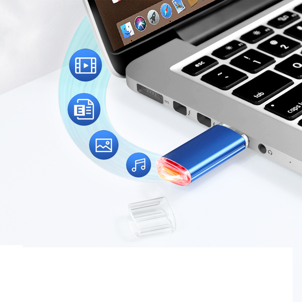 The USB flash drive is made of aluminum. The head keychain design is easy to carry, and the head LED lights up when working. The maximum write speed is 20 megabits per second and the maximum read speed is 25 megabits per second. The interfaces are USB2.1 and 3.1. Single product size 6.2×1.7×0.79cm, weight 7.2g.